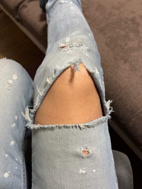結構気にいってたGパンが死んでしまいました。 クラッシュジーンズやダメージジーンズってあるけどこうも縦に避けてしまうとクラッシュやダメージとはいいがたい😓もう履く事ができません。スキニーのジーンズはパツパツで動きにくくなるのでストレッチ(...