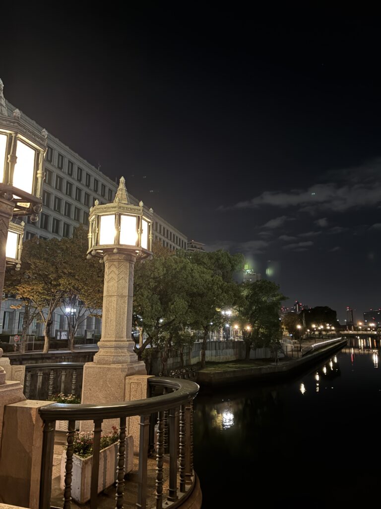でこの川沿いのキラキラしたネオンと町の静けさが癒されるんです。