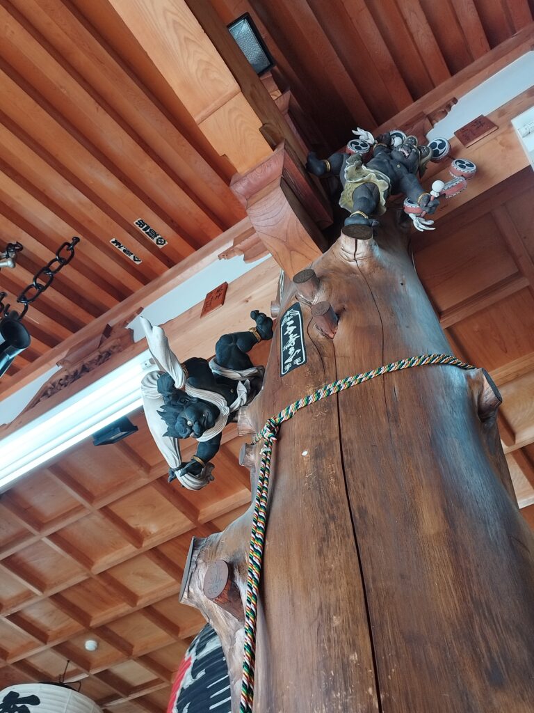雷神様は梁と柱に足をかけて力強さを感じますし