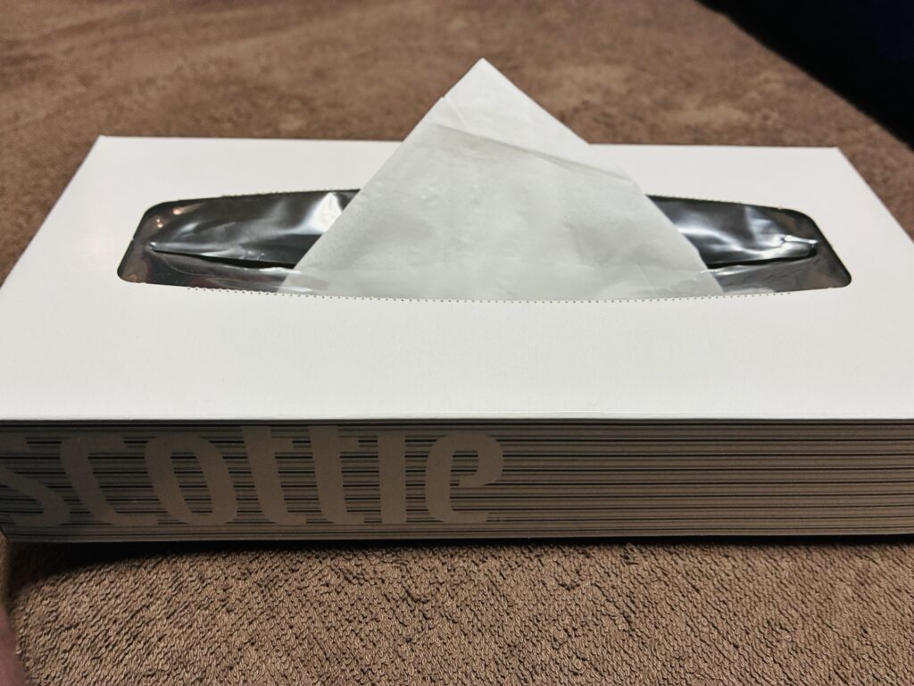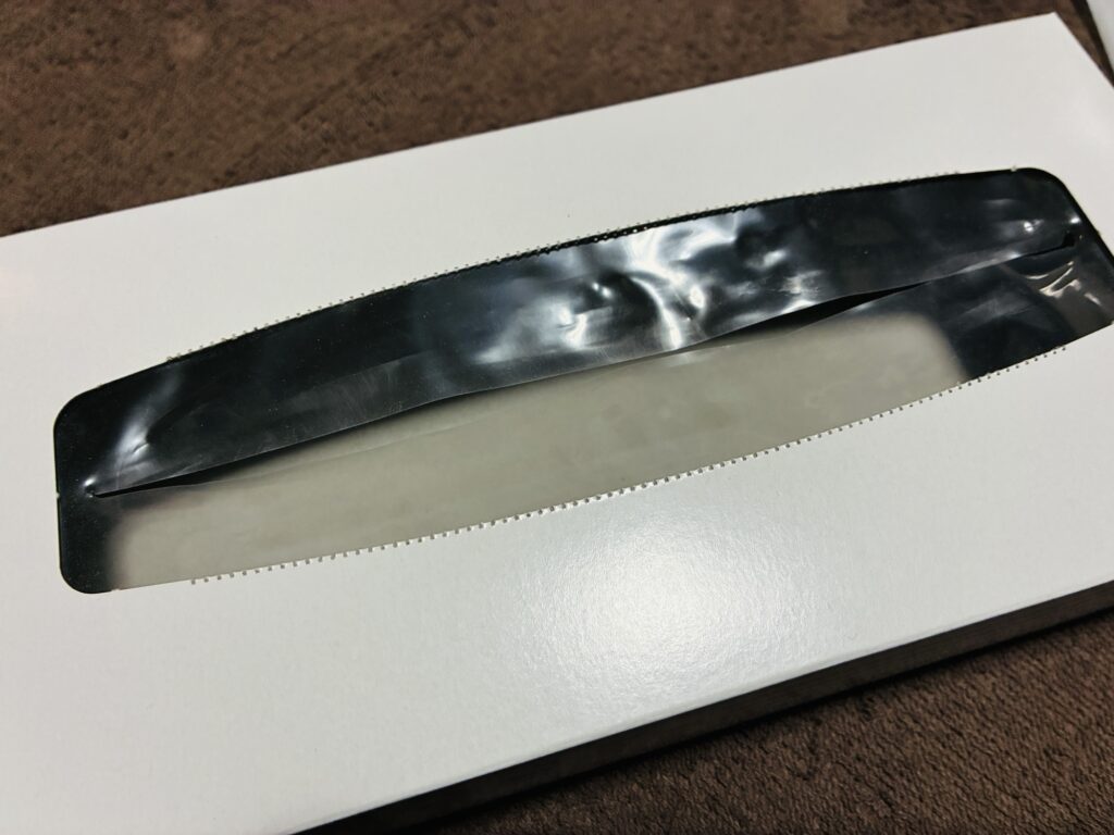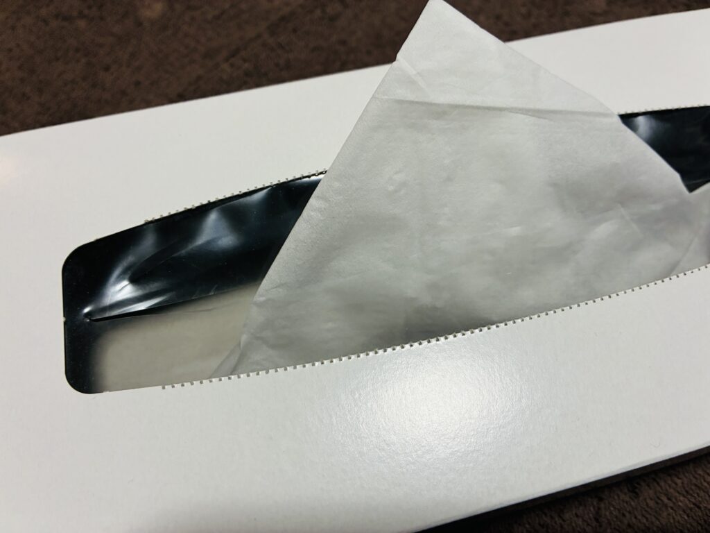 この三角のティッシュがラスト1枚!